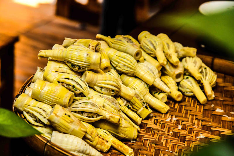 把肉馅儿包进竹笋里。金秀瑶族自治县融媒体中心供图