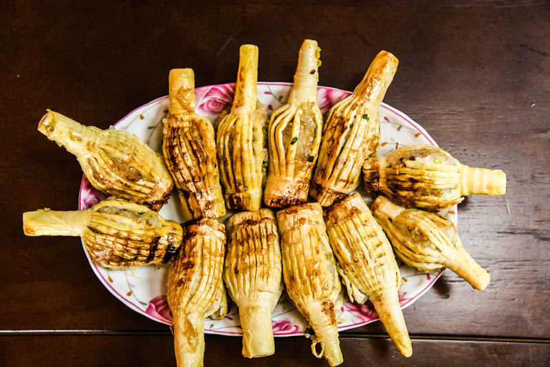竹笋酿煎至金黄,装盘上桌。金秀瑶族自治县融媒体中心供图