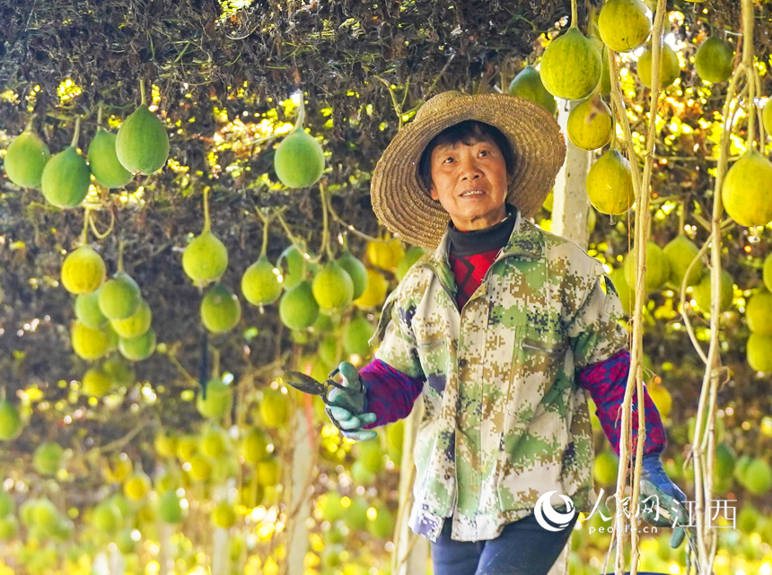 人民网南昌12月5日电 (毛思远)12月2日,江西省新余市仙女湖区河下镇平川村瓜蒌种植基地,农户忙着采摘、加工、晾晒收获的瓜蒌。近年来,新余市通过调整农产品种植结构,流转土地规模化发展瓜蒌、果冻橙、有机蔬菜、蜜橘等绿色生态农业,引领促进农业提质增效、转型升级。赵春亮摄