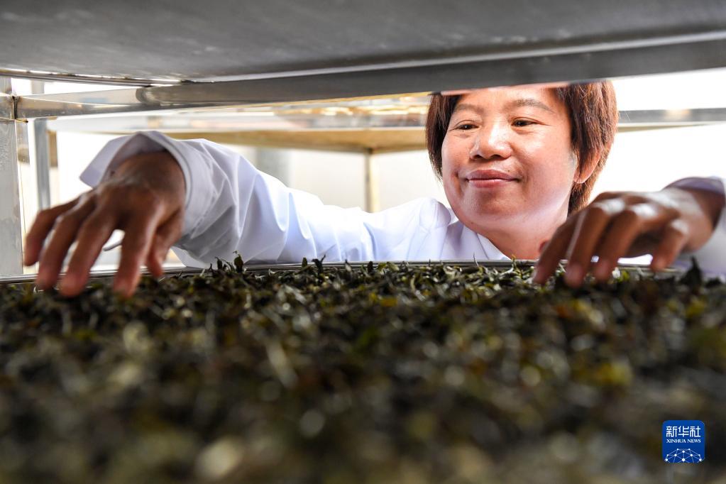 12月10日,卢花暖检查茶叶的摊晾情况。