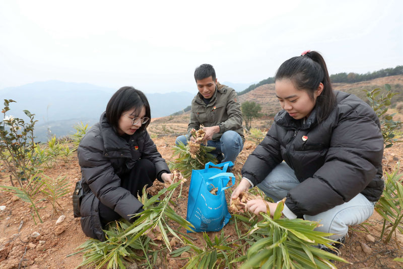 党员干部们在油茶基地里采收生姜。龚普康摄