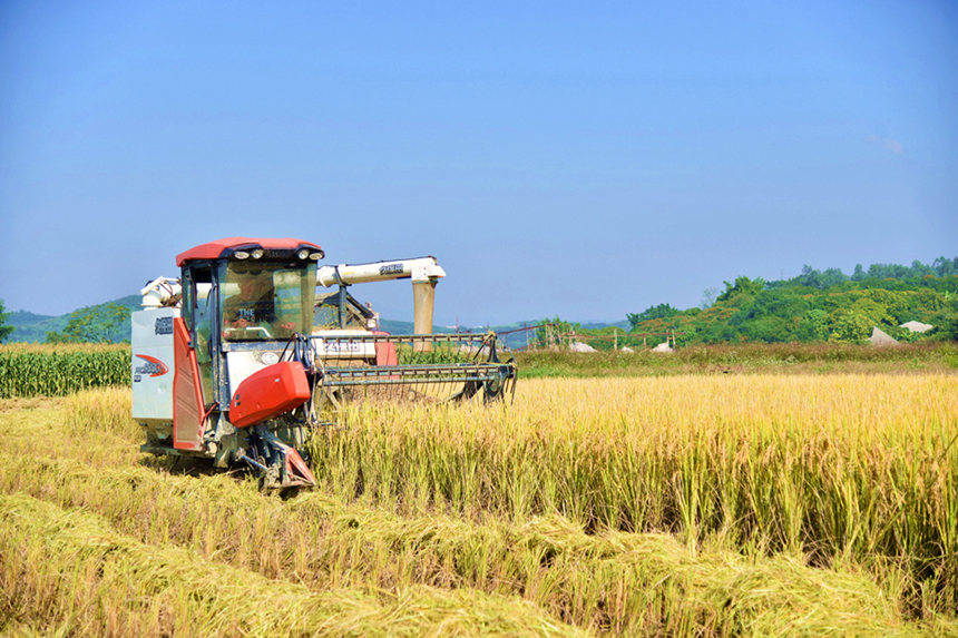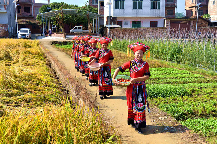 人民网百色12月16日电 近日,在广西百色市右江区四塘镇,初冬的大地沐浴着和煦的阳光,希望的田野搭配着辛勤劳作的壮乡农民,似一幅幅色彩斑斓的风景画,到处呈现出丰收的喜悦气息。(杨秀坚、王功孝 摄影报道)