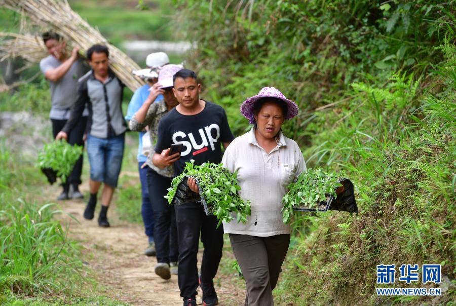 在广西融水苗族自治县同练瑶族乡如劳村,合作社的村民准备种植中药材(5月12日摄)。
