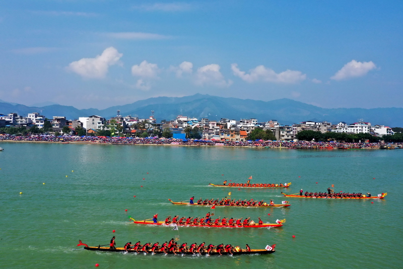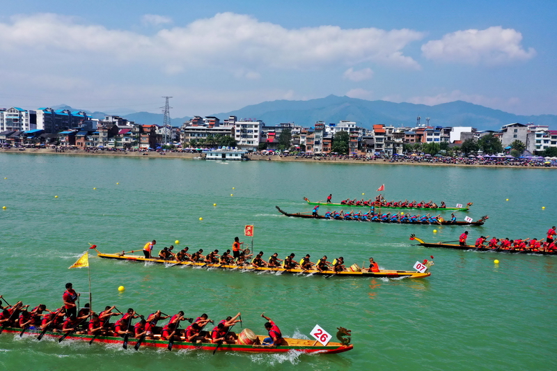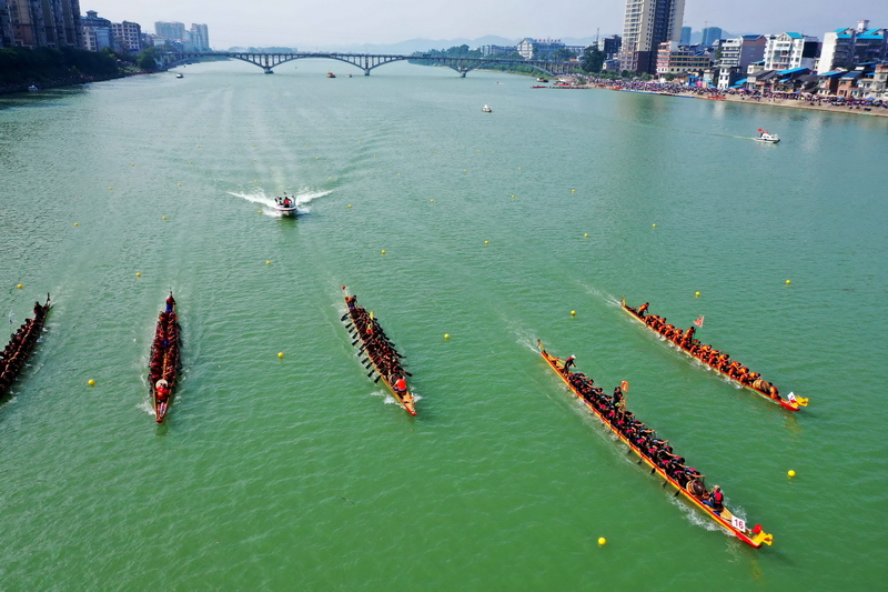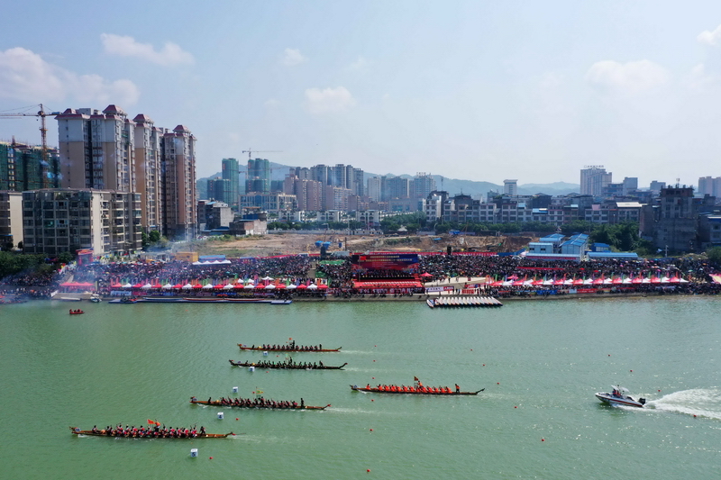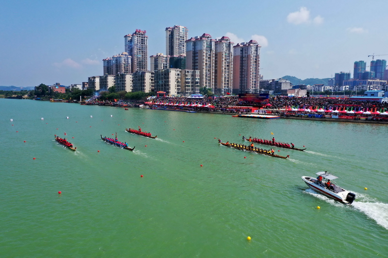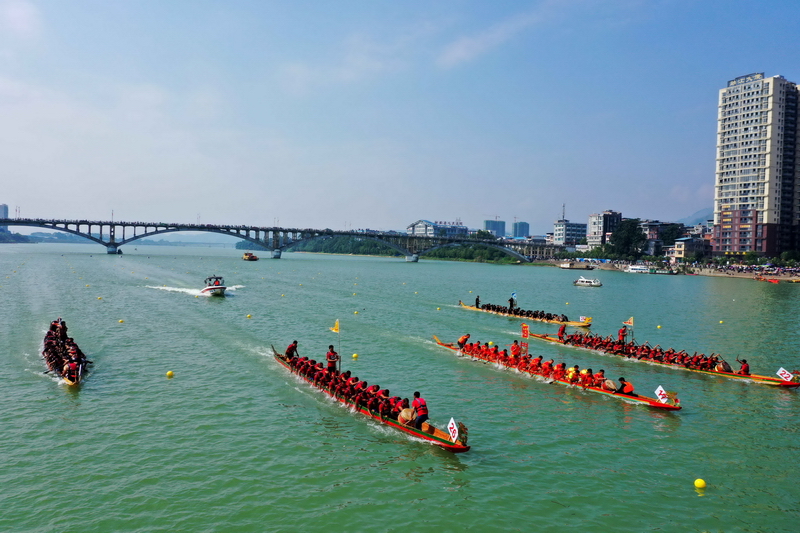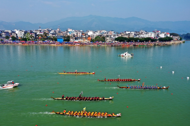 据了解,本届龙舟赛共分3天举行,10月9日开始,11日结束。在广西柳州市融安县,龙舟运动已有上百年的悠久历史,从1978年至今,融安县龙舟赛已成功举办了20届,“百年龙舟、魅力江城“早已成为融安一张亮丽的城市名片。(通讯员谭凯兴摄影报道)