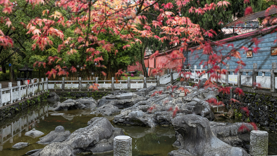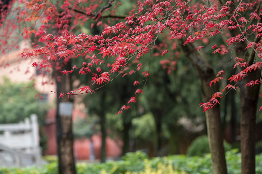 春天里,春风送暖,适宜的温度催红了广西桂林市全州县湘山寺内的“春红枫“,景区内的观赏枫树生长出红红的嫩叶,迎来上佳观赏期,成为春季一道特别的风景。