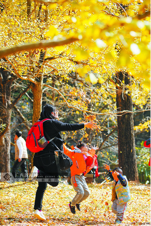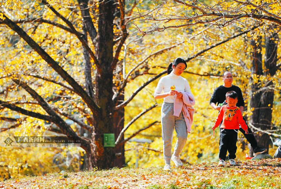 孩童在银杏林里嬉戏。广西新闻网-广西日报记者李家健 通讯员 黄勇丹摄