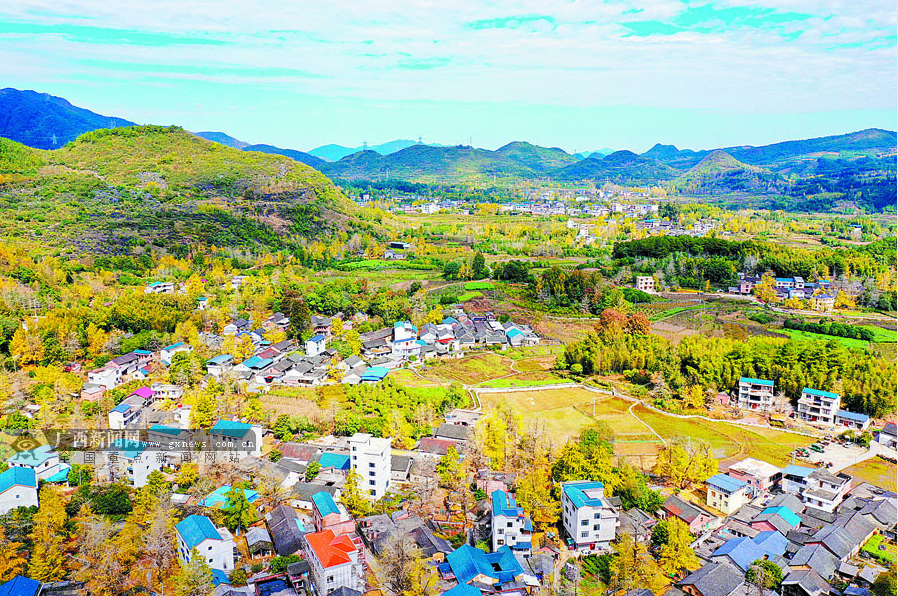 漫山遍野的银杏与错落有致的民居相映成趣。(记者李家健 通讯员黄勇丹摄)