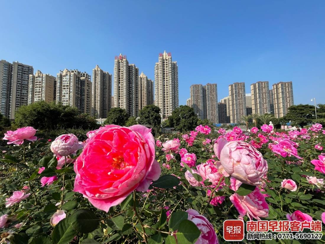 ▲南宁市花卉公园内的月季花正在盛开中。 南国早报客户端记者 邹财麟 摄