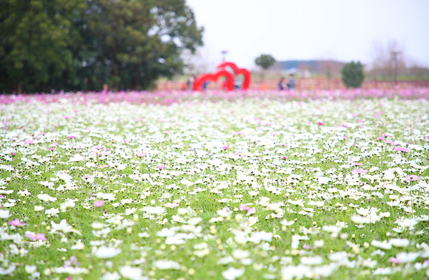 初春时节,春风吹盛了广西横州市的繁花。在当地的中华茉莉园里,大片格桑花迎着料峭春寒绽放,形成旖旎春光中烂漫的花海,引来许多赏花的游客。(彭远贺、陈国海 摄影报道)