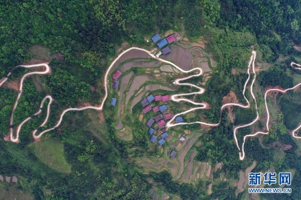 这是广西融水苗族自治县同练瑶族乡大坪村下大弄屯的通屯公路(5月12日摄,无人机照片)。 融水苗族自治县是国家扶贫开发工作重点县和滇黔桂石漠化片区县,也是广西20个深度贫困县之一,贫困发生率一度高达28.53%。近年来,融水县集中兵力攻克深度极度贫困堡垒,狠抓特色产业发展,大力发展旅游业,...
