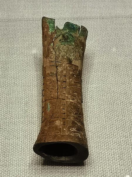 甲骨“选手“兽面纹牛骨雕件 年龄:商代