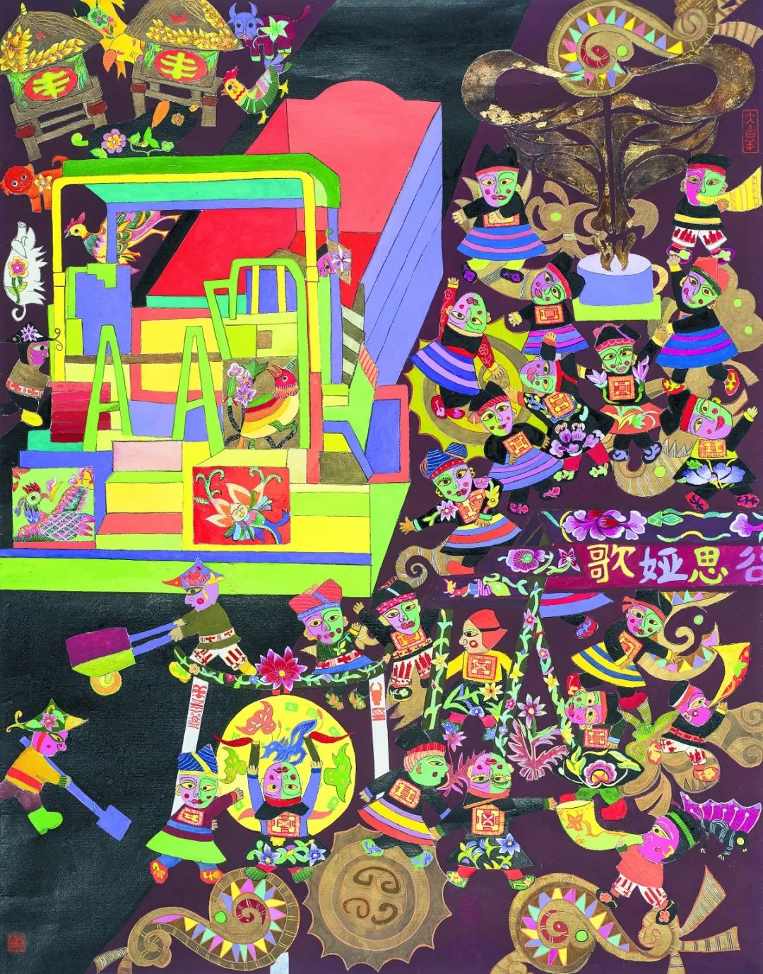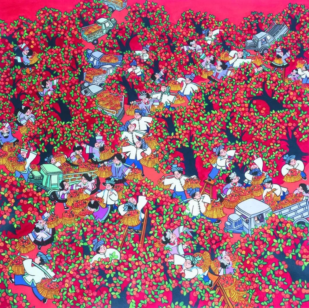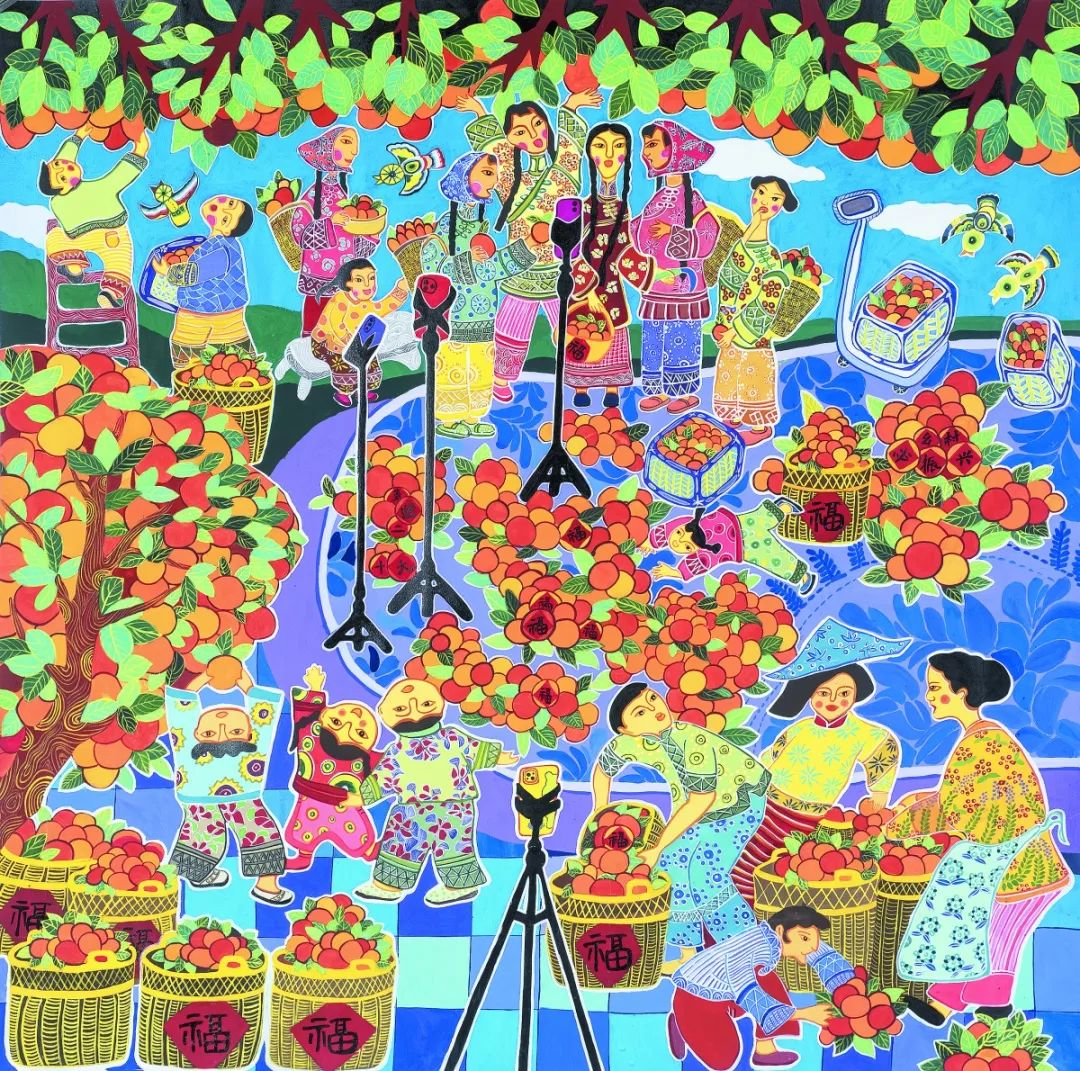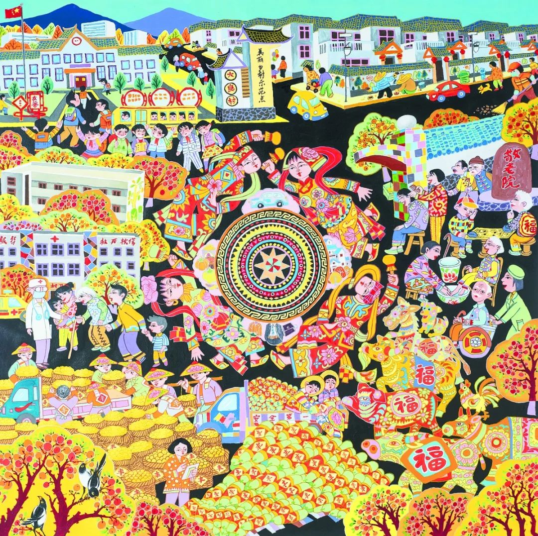 4月29日,由广西书画院、广西美术家协会联合主办的“喜迎二十大 丹青绘振兴——2022广西农民画大展“在南宁举办。本次画展共收到全区各地农民画家投稿作品1076件,经专家评审,最终有278件佳作展出。热情纯朴的广西农民画家以手中的画笔生动展示了八桂大地发生的深刻变化,反映了农村巩固拓展脱贫攻坚成果同乡村振兴有效衔接。农民画家们用多样的艺术手法描绘了身边产业发展、乡村振兴、民族团结、民生改善等火热故事,充分反映了基层艺术家们拥抱时代、关注现实、扎根生活、服务人民的理想志趣、艺术兴趣、生活乐趣,充分表达了壮乡儿女紧跟伟大复兴领航人踔厉笃行的共同心声,为迎接党的二十大胜利召开营造了良好的社会氛围。现选发部分佳作,以飨读者。