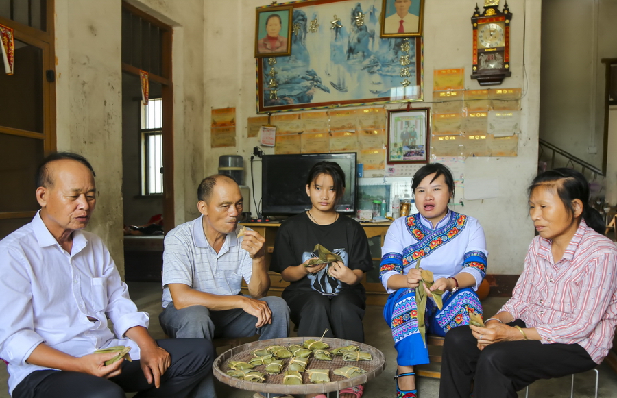 “南岸村共有壮、汉、瑶、侗等400多人,一直以来,村里的各民族同胞像石榴籽一样紧紧抱在一起,各民族的传统节日大家共同庆祝。这段时间,外嫁的姑女、外出的游子无论走多远都会回家,唱山歌歌唱美好新时代,歌唱幸福新生活,品尝糯米粑粑,祝福家庭的和睦,民族的团圆。”南岸村村民覃剑代说道。
