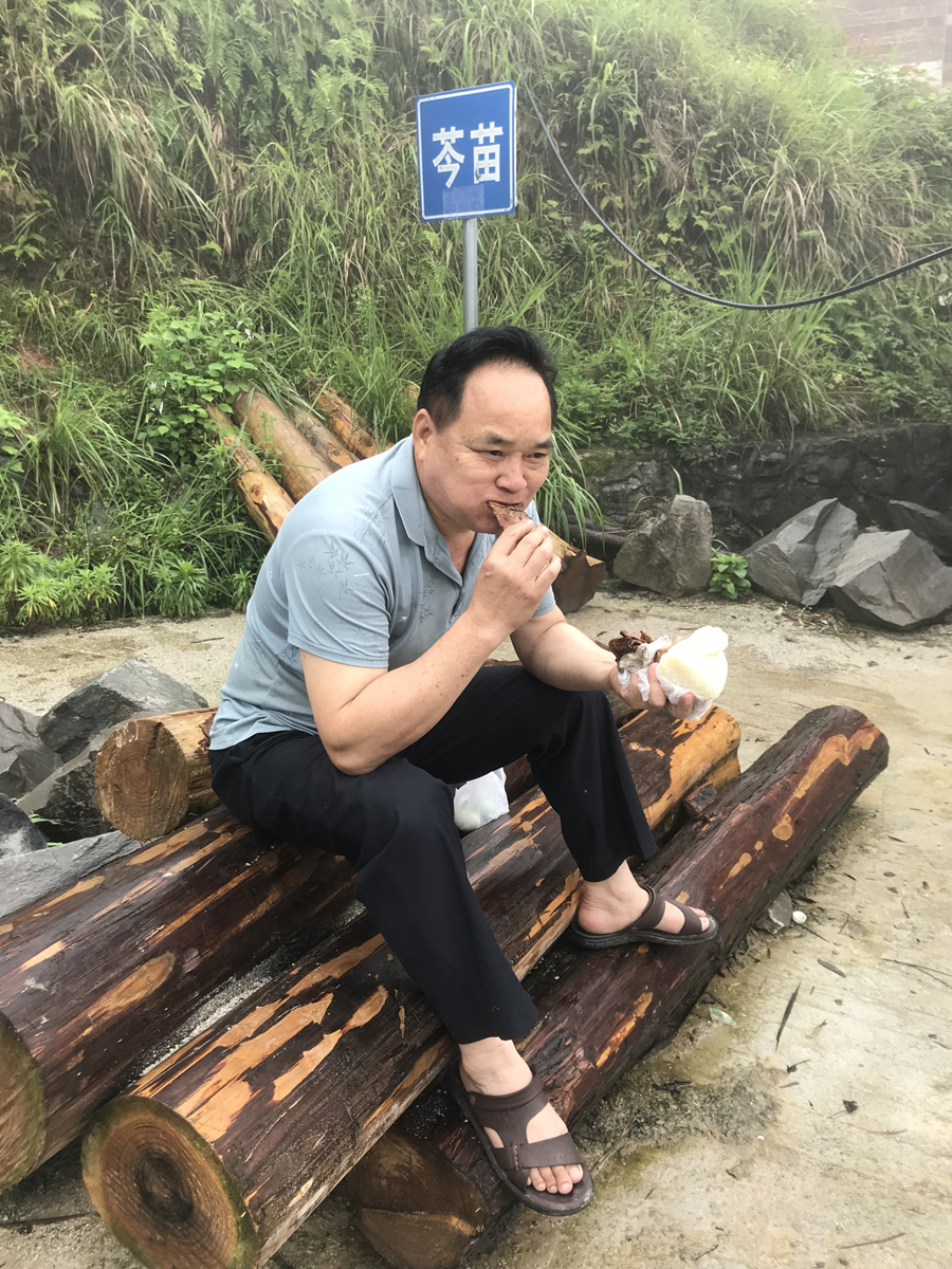 走村串寨搜集古籍途中,杨会光停歇吃起自带的糯米饭。