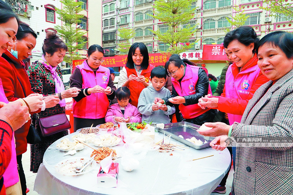 2月3日,百色市右江区龙景街道七塘社区联合党委开展“党建引领同心圆 党群同心乐元宵”主题党日活动,来自各“双报到”单位的党员与社区居民一起包饺子、吃汤圆、猜灯谜,迎接元宵佳节。陆杰 摄