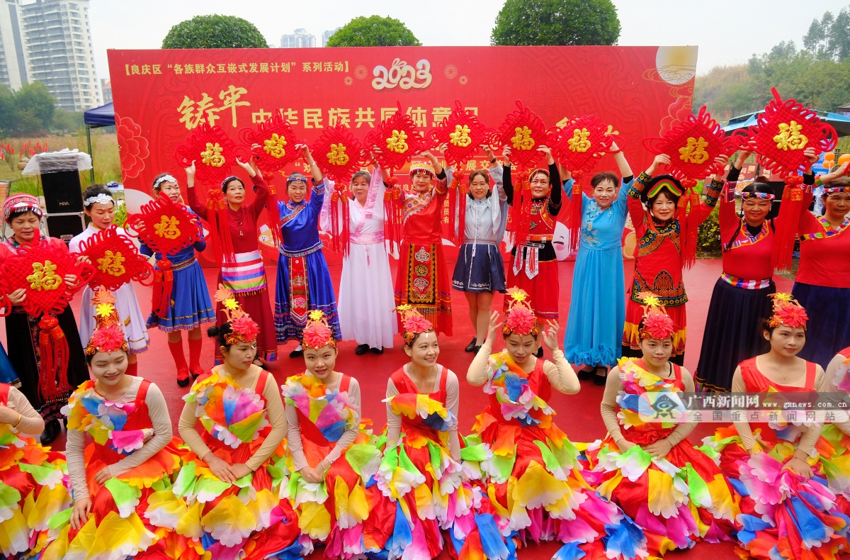 2月4日,南宁市良庆区组织各族群众和工人代表,在铸牢中华民族共同体意识主题公园(东湖公园)开展欢乐迎元宵活动。记者 周军 摄