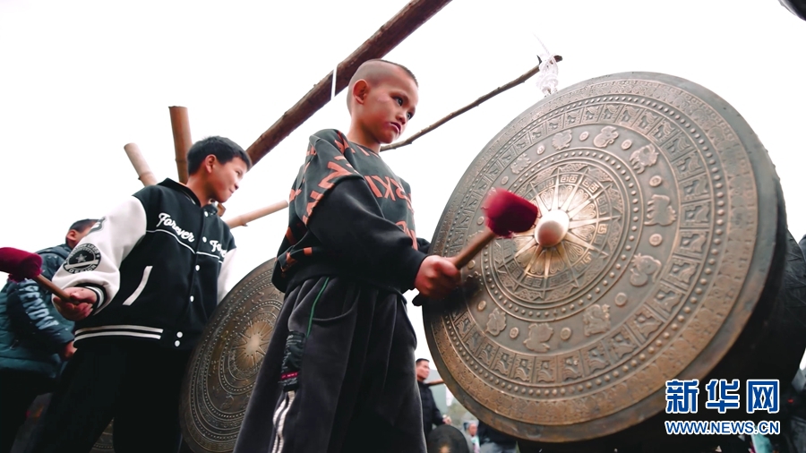 铜鼓阵阵,闹春祈福。立春时节,在广西东兰县长江镇河口、三弄瑶族乡弄宁瑶寨、巴畴乡巴英村等地,陆续举行红水河铜鼓山歌会、非遗节目展演、“壮族蚂拐节”立幡活动,数百面铜鼓在红水河畔敲响春天的音符,祈求新的一年,风调雨顺,五谷丰登。