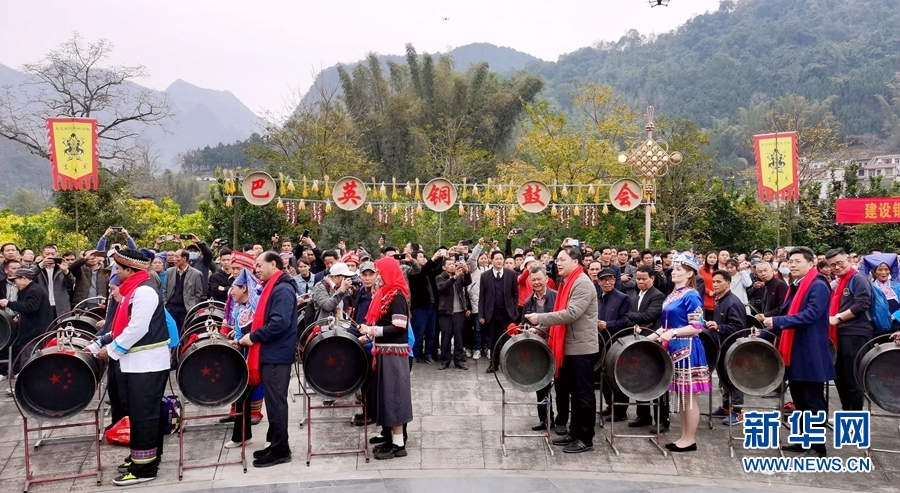 2月21日,俯瞰壮观的广西河池市东兰县巴畴乡巴英铜鼓会。高东风摄