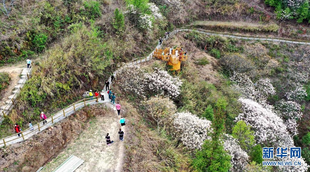 当日,广西河池市天峨县第八届三堡桐花节举行,吸引游客来到三堡乡,观赏桐花美景。天峨县三堡乡有“油桐之乡”的美称,油桐种植面积达10万亩。近年来,当地因地制宜,以花为媒,举办桐花节等农旅融合活动,促进油桐产业和生态旅游业快速发展。