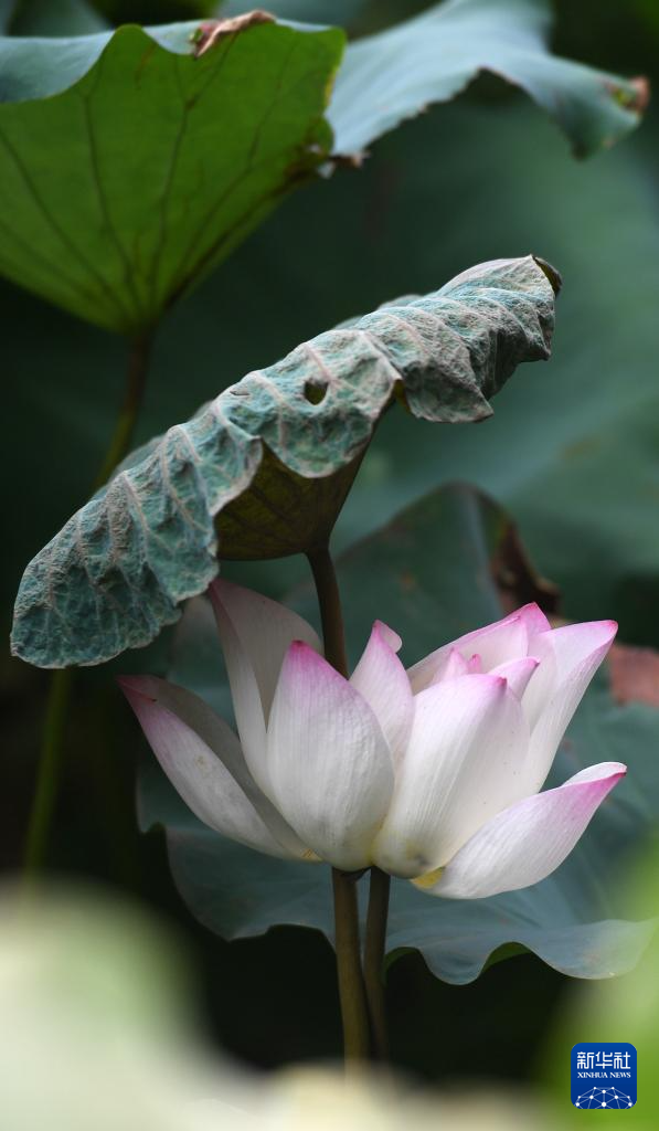 酷暑时节,广西南宁市南湖荷花有的含苞待放,有的已经悄然绽放。