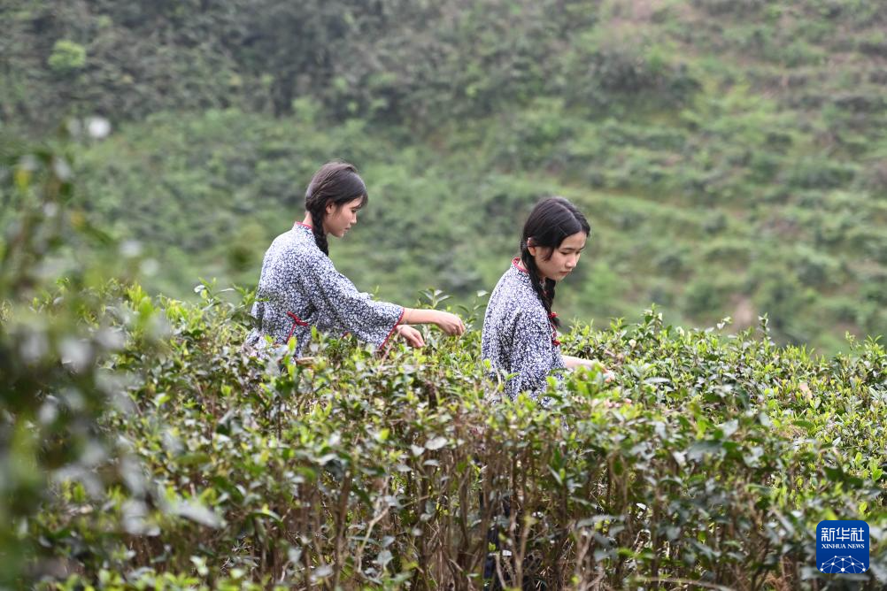 3月25日,在梧州市苍梧县六堡镇合口茶园,茶农们在采茶。