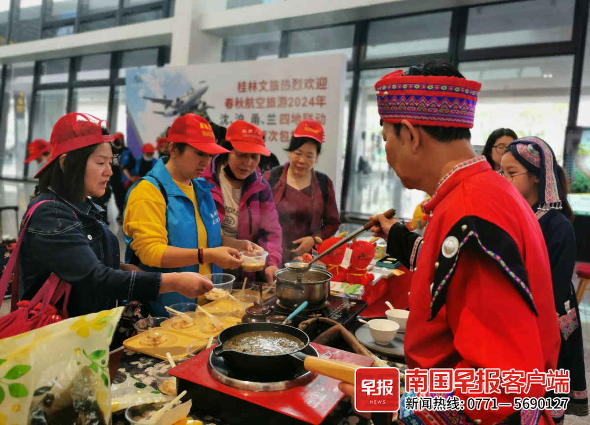 31日上午,包机游客刚抵达桂林两江国际机场,一碗碗热气腾腾的恭城油茶已准备好,展现了桂林的热情,游客们喝上一碗赞不绝口。大多数游客对于桂林的认识,都来自语文课本上的那篇《桂林山水》。“对孩子们来说,上很多节课,不如去亲身体验一次,只有身临其境,书本上的一切才能在眼前具象化。”游客王女士说。