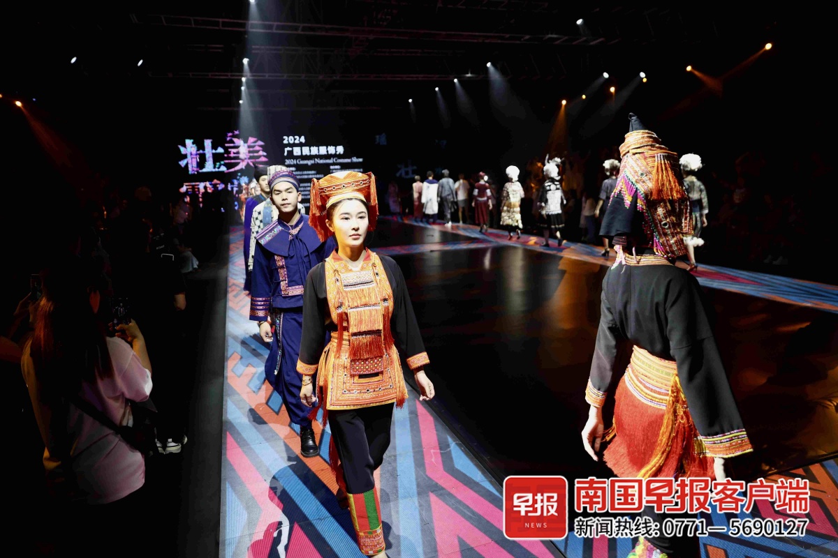当晚的“壮美霓裳”广西民族服饰秀是2024年“广西三月三·八桂嘉年华”的重要活动之一。活动分为“祖屋珍藏”“锦绣新妆”“萌童花衣”3个篇章,集中展示广西12个世居民族170多套精美的非遗传统服饰、民族时尚服饰、少儿民族服饰。