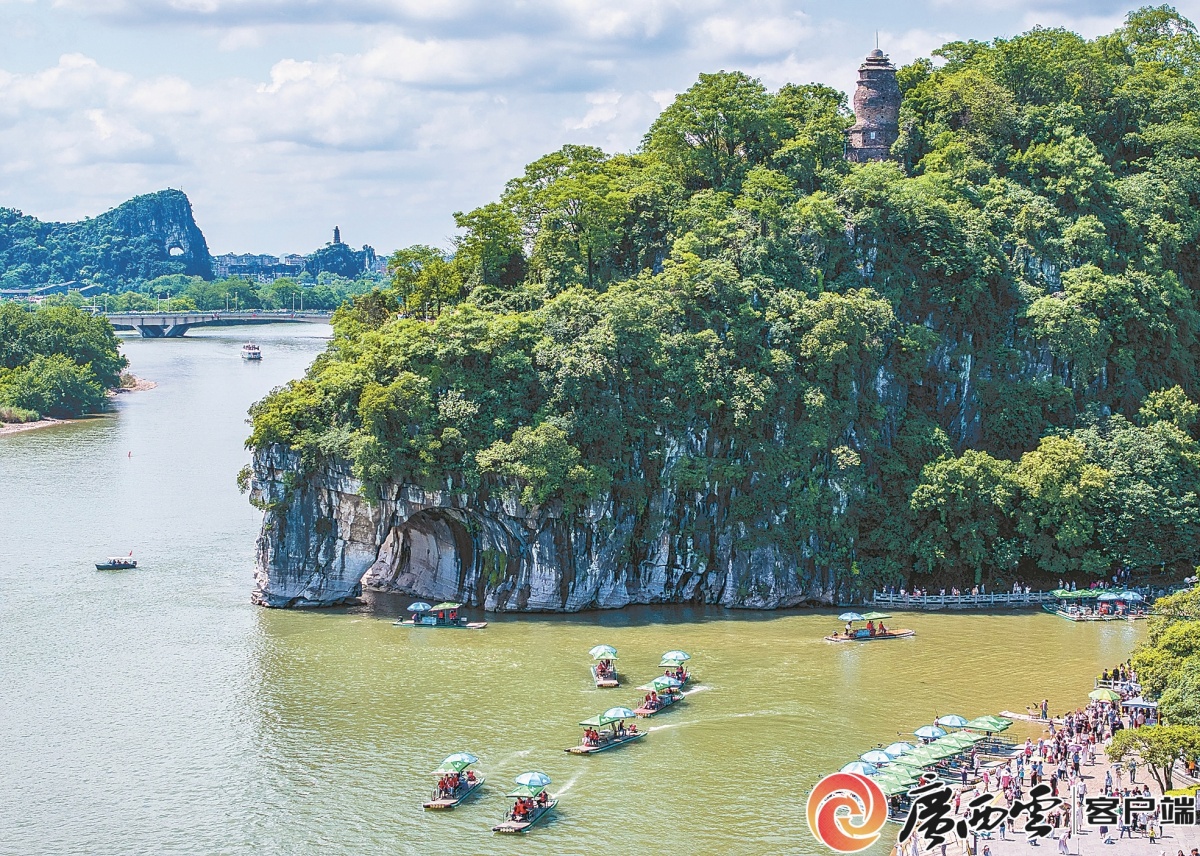 5月5日是“五一”假期最后一天,桂林象鼻山景区人潮依旧不减,来自全国各地的游客在此感受漓江美丽风光。 唐艳兰 摄