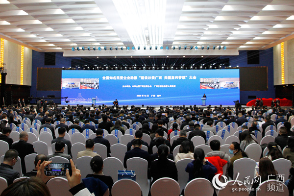 人民网南宁12月22日电 (朱晓玲、实习生黄莹莹)12月21日,由全国工商联与广西壮族自治区人民政府共同举办的全国知名民营企业助推“建设壮美广西 共圆复兴梦想“大会在南宁举行。