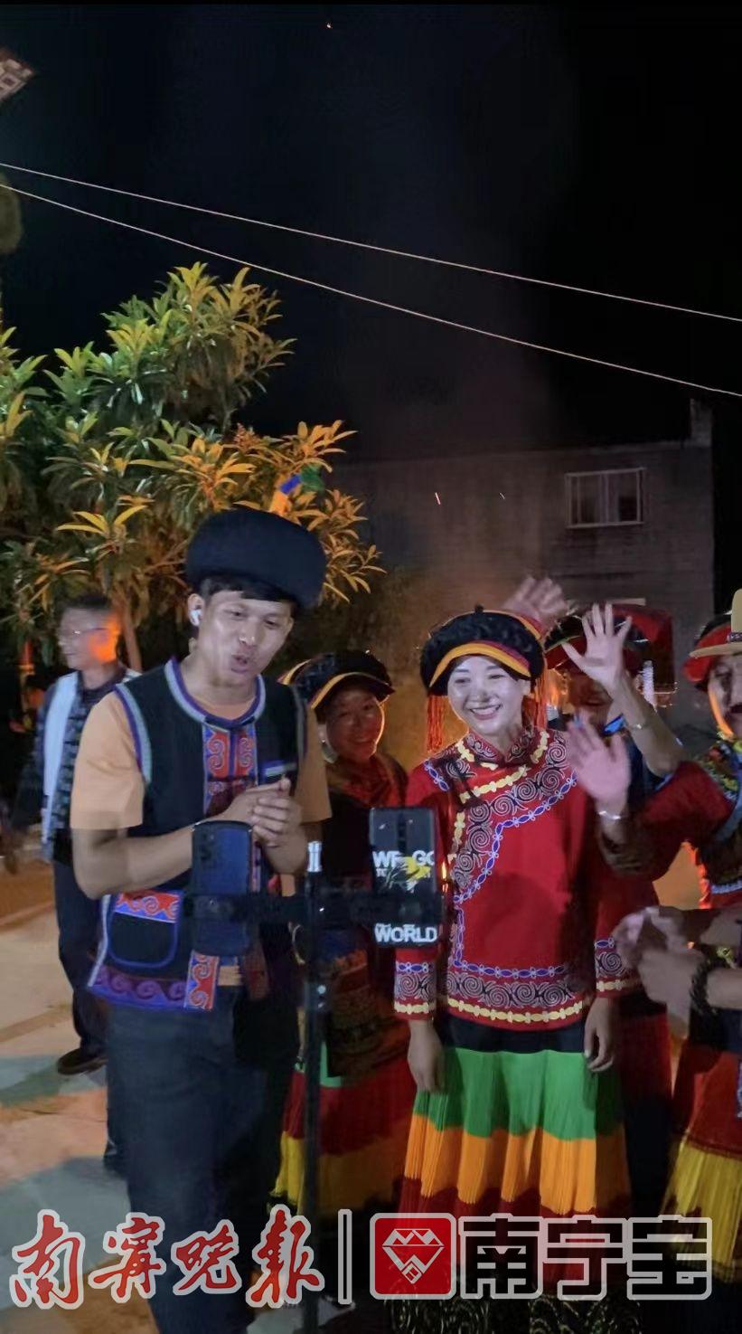 蒋凤(右)在隆林直播彝族篝火晚会