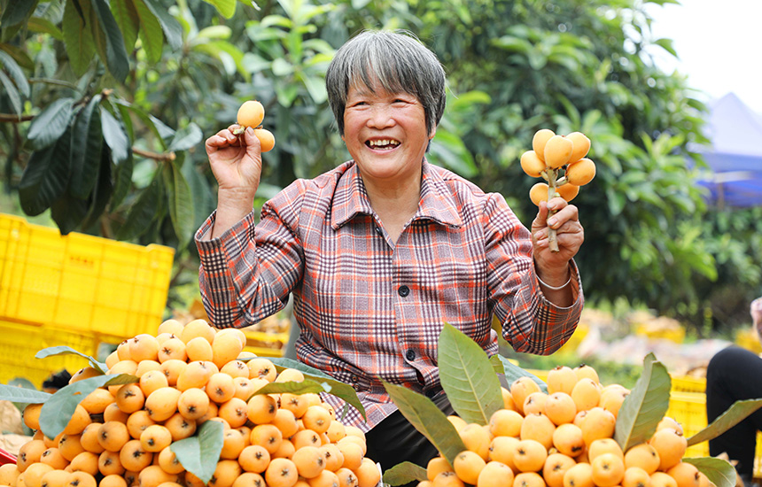 果农喜笑颜开。杨曼摄果农正在给枇杷装筐。杨曼摄果农正在给枇杷装框。杨曼摄果农挑选枇杷装框。杨曼摄 人民网融安4月26日电 近日,在广西柳州市融安县大良镇石门村的枇杷种植园,漫山遍野的枇杷树枝繁叶茂、果实累累。果农们正忙着采摘果实,并细心地将个头、色泽、成熟度等符合标准的枇杷装入筐...