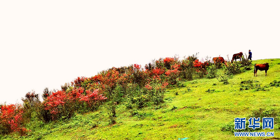 山坡上绽放的杜鹃花。陆仕臣摄漫山遍野的野生杜鹃花。陆仕臣摄漫山遍野的野生杜鹃花激情绽放,与山间林立的风力发电机相映成趣。 陆仕臣 摄青山如黛、红花似锦的绝美意境。 陆仕臣 摄 春末时节,在广西桂林市灌阳县灌阳镇与西山瑶族乡之间的春木界和正江岭,漫山遍野的野生杜鹃花绽放,与山间林立的风力发...