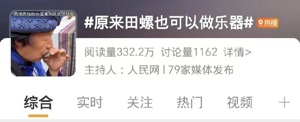 近日#原来田螺也可以做乐器#这一话题在微博引起广泛关注 话题下,靖西“壮族八音”代表性传承人李西克用田螺笛吹奏了一曲《我和我的祖国》、百色靖西市壮博民俗文化艺术团乐师曾丹为网友展示如何制作“田螺笛”。网友纷纷留言:“田螺:没想到我被嗦完后还能变成乐器。”“我一个广西人现在才知道...