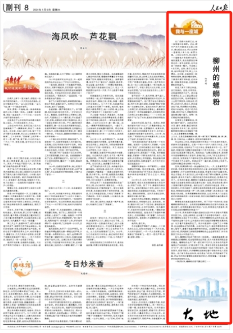 《人民日报》2024年01月06日第8版截图 在广西柳州的柳江边,有一条街道叫谷埠街。过去,柳州产的大米都是在这里上码头,通过船运出去,所以这条街一直都是人来人往、商贾云集。上世纪80年代,我从桂中一个偏僻地方来到柳州读书。每到星期天,我总是要到谷埠街边的一家书店报到,在书店里一待就是...
