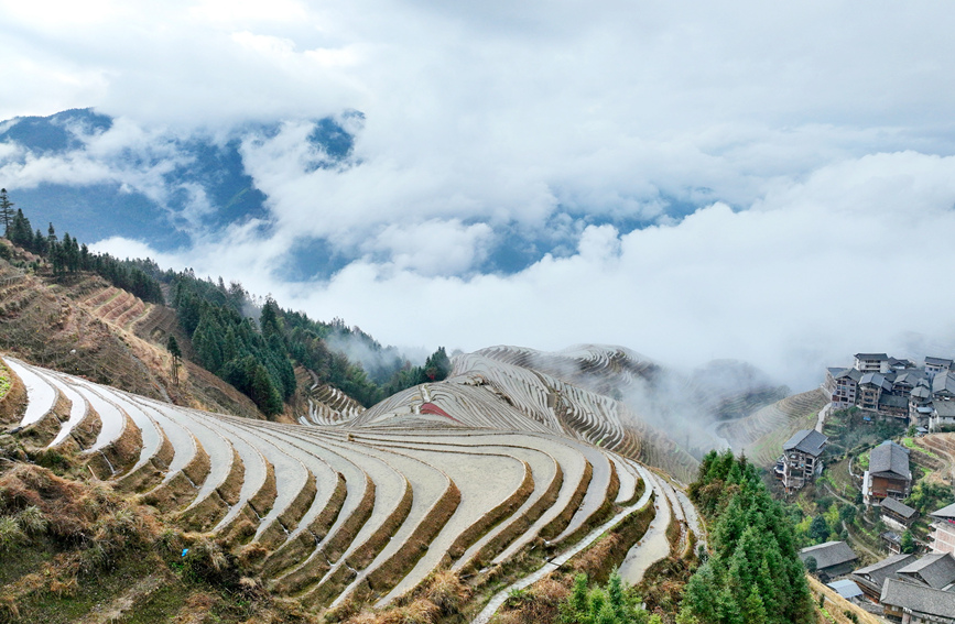 梯田云雾景观梯田云雾景观层层叠叠的梯田和错落有致的吊脚楼在云海间若隐若现冬日梯田景如画层层叠叠的梯田和错落有致的吊脚楼在云海间若隐若现梯田云雾景观 近日,广西桂林市龙胜各族自治县龙脊梯田出现雨后云雾景观,极目远眺,远山如黛,梯田如玉,层层叠叠的梯田和错落有致的吊脚楼在云海间若...