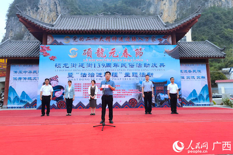 活动现场。人民网记者 陈燕摄 祭祀祈福、山歌擂台、花炮争锋、硕龙迎春、民间传统文艺晚会……5月4日—5日,美丽的南疆国门魅力小镇——大新县硕龙镇举办主题为“元春颂友谊 边城展新风”的第139周年建街(元春)节民俗文化活动,逾万名边民载歌载舞,欢聚一堂,共庆百年民俗“元春节”。...