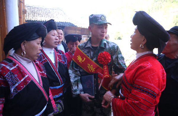 欢送新兵入伍现场。潘勇干摄 欢送新兵入伍现场。潘勇干摄 近日,广西龙胜各族自治县龙脊镇中六村下埠屯锣鼓喧天,鞭炮齐鸣,乡亲们身着少数民族盛装,夹道欢送两位新兵入伍。 欢送新兵入伍现场。潘勇干摄 欢送新兵入伍现场。潘勇干摄 阳光帅气的两位小伙子,身着戎装,披光荣入伍绶带,胸前戴...