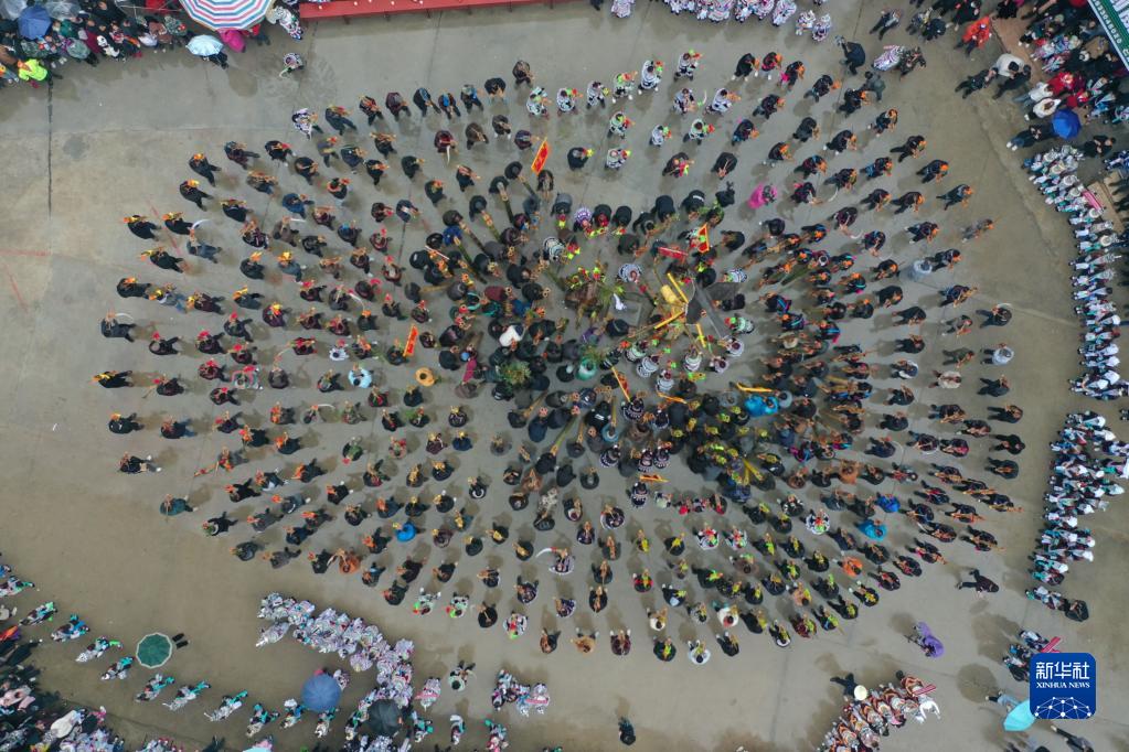 2月2日,融水苗族自治县杆洞乡党鸠村苗族同胞进行芦笙踩堂。