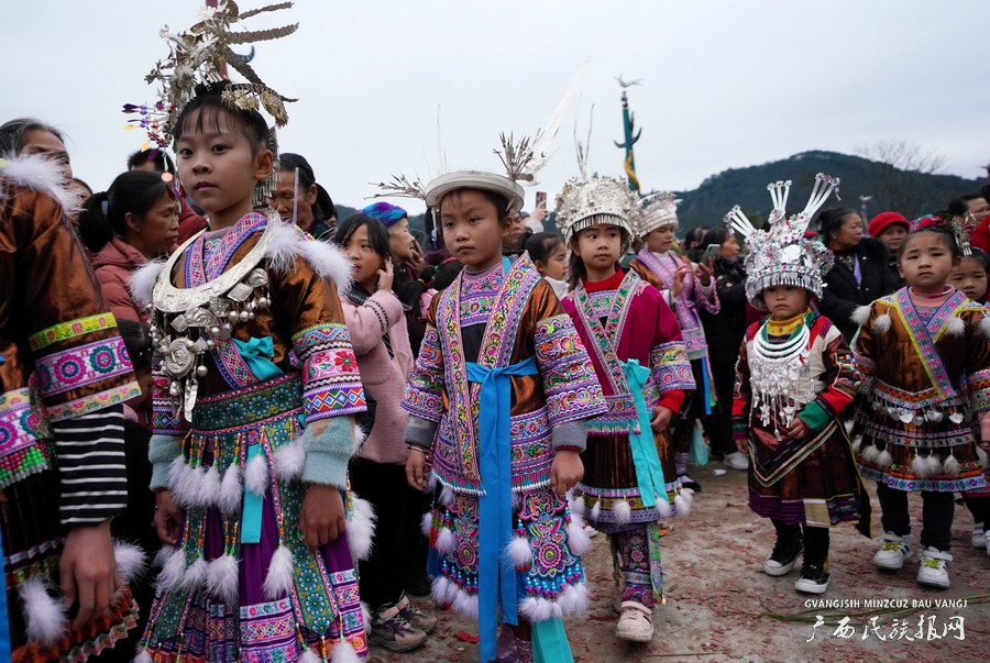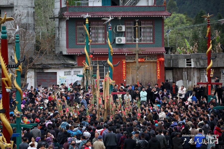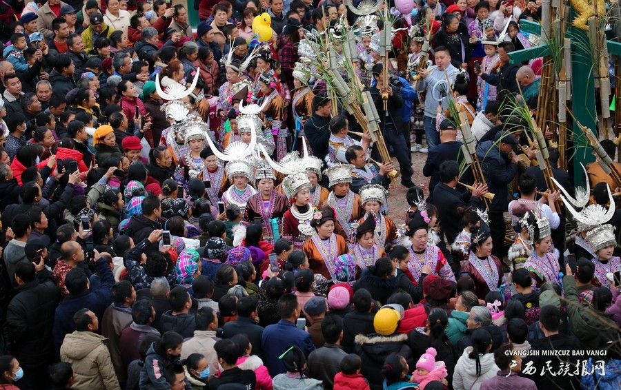 当日是农历正月十六,融水苗族自治县香粉乡举行传统的“古龙坡会“,苗、瑶、侗、壮等少数民族同胞欢聚一堂,开展舞狮表演、吹芦笙、踩堂等民俗活动,祈盼风调雨顺、五谷丰登。(龙林智)