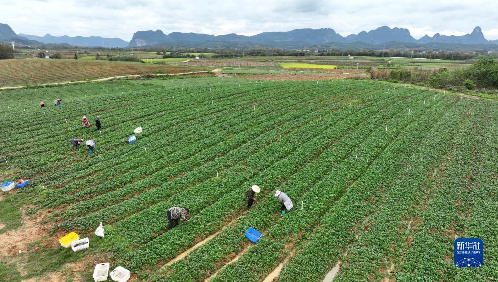 3月27日,在柳州市柳城县社冲乡柳州螺蛳粉原材料基地里,农民在蔬菜基地里采摘蔬菜(无人机照片)。3月27日,在柳州市柳城县社冲乡柳州螺蛳粉原材料基地里,工人在鹌鹑蛋加工厂车间里忙碌。3月27日,在柳州市柳城县社冲乡柳州螺蛳粉原材料基地里,农民在木耳基地大棚里浇水。3月27日,在柳州市柳城县社冲乡柳州螺蛳粉原...