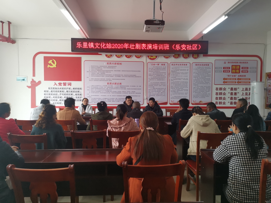 2020年12月24日,田林县乐里镇文化站到田林县百花展易地扶贫安置点开展为期1天的壮剧表演培训,主要学习壮编剧演唱、戏剧台步基础训练,本次共有47名壮剧爱好者参加培训。