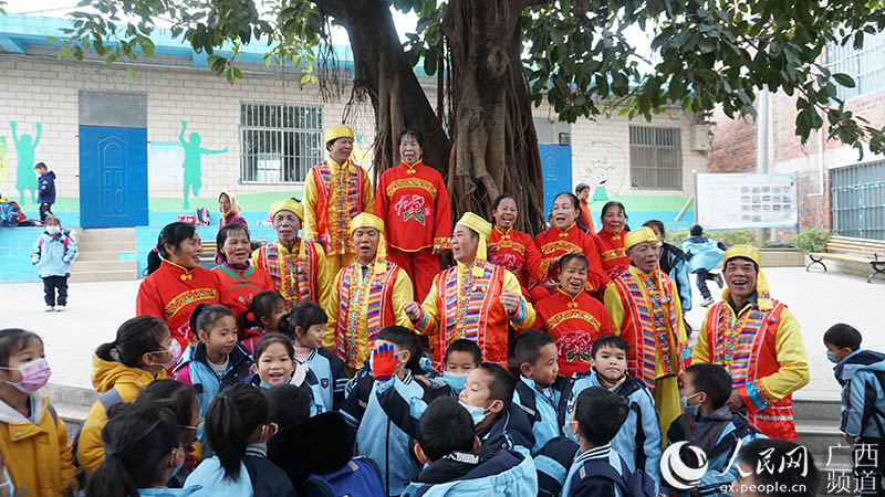 江南沙井平话文化艺术团成员走进沙井小学、三津小学的课堂,让学生们亲身参与其中,感受平话山歌的传统艺术魅力。“孩子们很积极,也学得很快,教了他们一两遍就能跟着一起唱。“江南沙井平话文化艺术团负责人黄木养说。每逢重大节日,江南沙井平话文化艺术团还会在三津村村委、新秀公园等群众聚集地进行平话山歌的表演,同时进行爱家爱国爱党的宣传,助力江南区的精神文明建设工作。