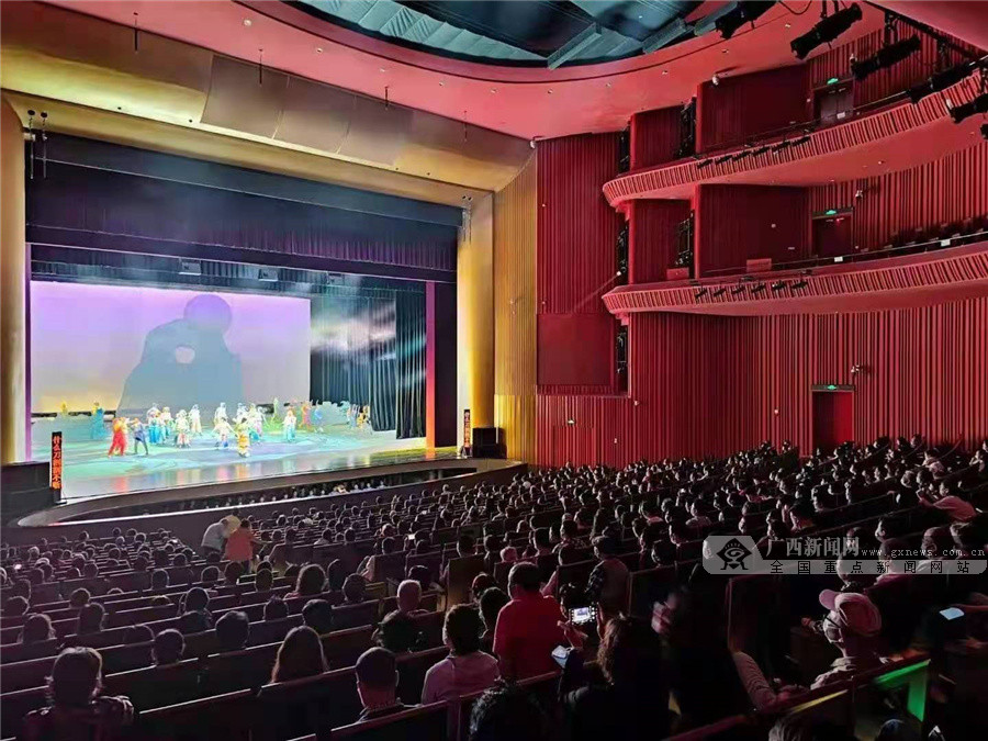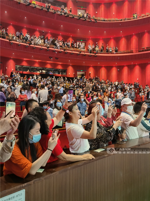 演出当天,上至耄耋之年的老人下至7、8岁的孩童纷至沓来,竞相争睹“新刘三姐“的风采,现场1200个座位座无虚席。年逾70岁的四川老戏迷刘阿姨拄着拐杖来看演出,她说自己是上个世纪60年代电影《刘三姐》的忠实粉丝,朗朗上口的广西山歌里有她最美好的青春记忆,今天来看《新刘三姐》既是为了欣赏演出,也是为了寻找年轻时的梦。演出之时,当熟悉的《多谢了》《山歌好比春江水》等经典旋律响起,台下立刻响起如潮水般的掌声。“好听!时尚!经典!“蓉城观众对《新刘三姐》的音乐给予充分肯定,并津津乐道于剧中乡村振兴的火热场景和淳朴善良的人物形象,高度评价《新刘三姐》在守正创新中走出了地方戏曲传承发展的新路子,让地方戏曲既有“经典味“,更有“时代情“。
