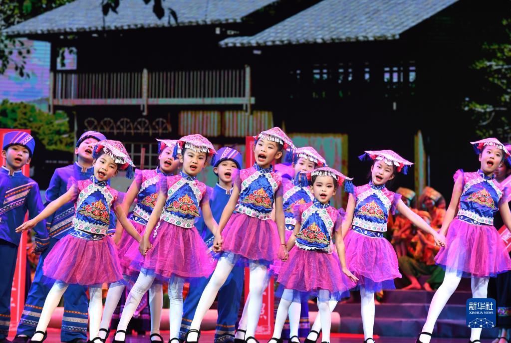 12月4日,小演员在《十二天籁 壮族嘹歌》晚会上唱嘹歌。新华社记者 周华 摄