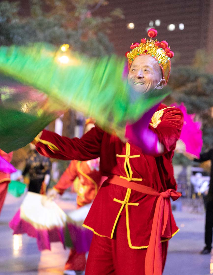 “咱们这秧歌队里面有壮族、满族、苗族、蒙古族、回族,还有仫佬族,几个民族联合在一起,我感觉这个大家庭整的非常热闹、和谐。“来自宁夏回族自治区的马金华说。