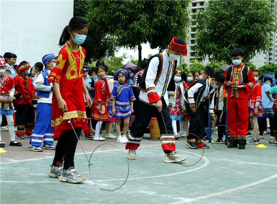 南宁云—南宁新闻网讯(记者 邓玲 通讯员 潘志安)为庆祝壮族“三月三“传统节日的到来,连日来,广西-东盟经开区各所中小学在做好疫情防控的前提下,错时错场开展以壮族“三月三“为主题的系列民俗文化活动,通过校园民族歌会、民族美术展、民族特色体育活动等形式,传承和发扬民族特色文化,丰富校园文化生活。