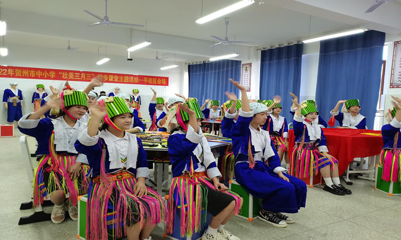 近日,贺州市平桂区民族学校举行了“壮美三月三· 石榴花开成长路“主题活动,通过“线上同上一堂课“、“制作手工艺品“、“唱响瑶族山歌“、“跳起竹竿舞“等活动庆祝了美好的节日。