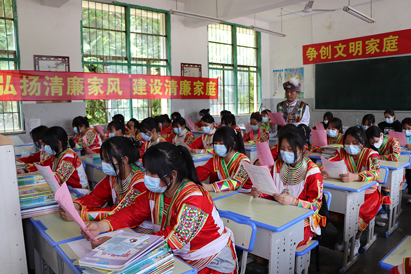 4月14日,融水苗族自治县人大、县妇联、白云乡党委联合在白云乡初级中学开展“清廉家风文化进校园“活动,以“清廉家风“教育推动全社会形成爱国爱家、相亲相爱、向上向善、共建共享的社会主义家庭文明新风尚。