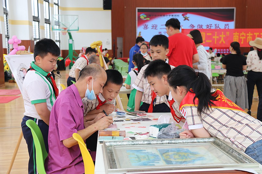 5月31日上午,南宁市兴桂路小学组织开展精彩纷呈的非遗手工艺项目进校园活动,让同学们与非遗项目零距离接触,弘扬传统文化艺术,推动民族经典文化传承。