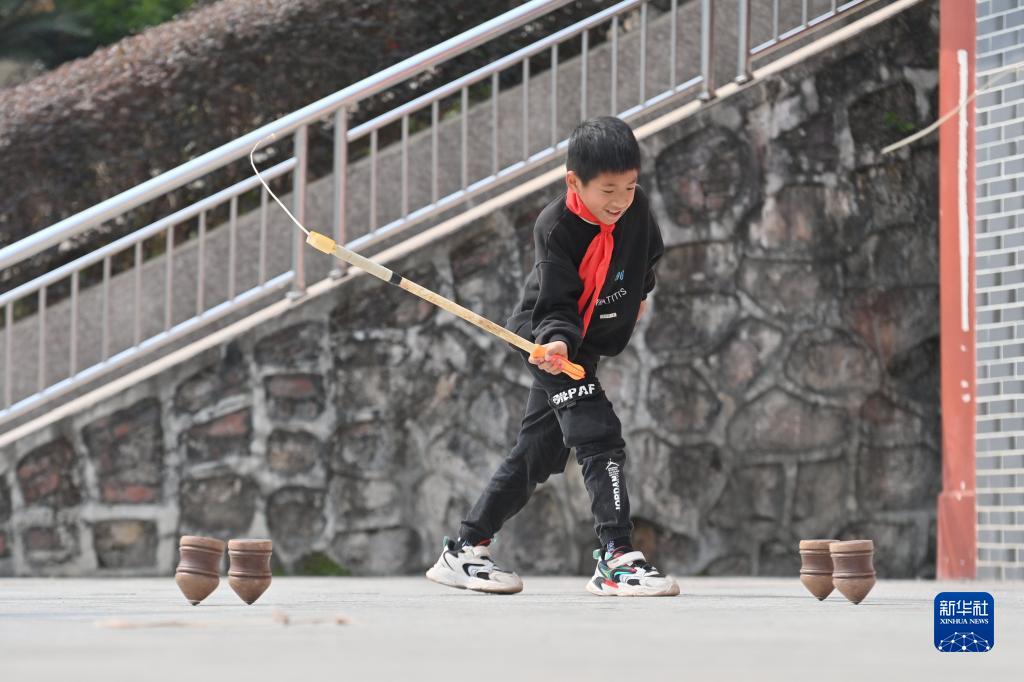 近年来,广西梧州市将打陀螺、抛绣球、滚竹环等少数民族传统体育项目引进中小学课堂,让学生在传承优秀中华文化的同时接受民族团结进步教育。